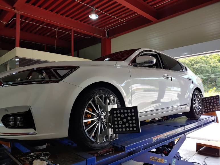 마제스티9 4본 교체후 차량쏠림과 편마모 방지를 위해 휠얼라먼트도 교정 했으니