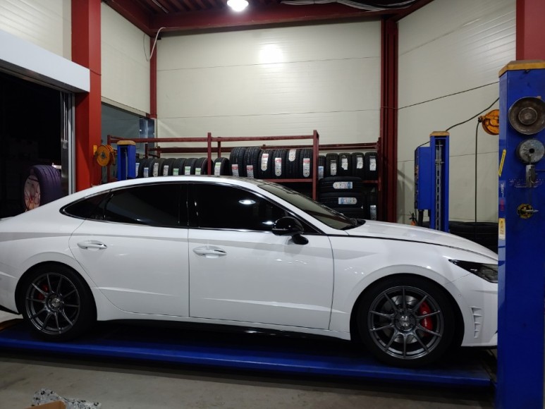 신형 쏘나타dn8 브레이크 튜닝 만도슬림 4p 인터알 355mm 패드 & 순정형 리어확장