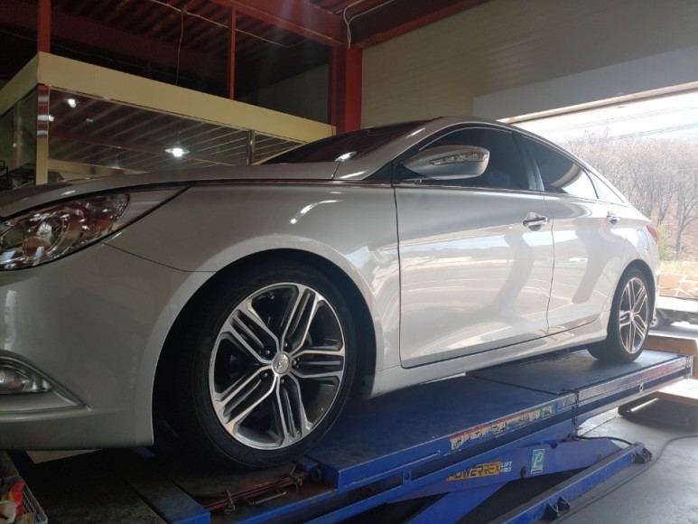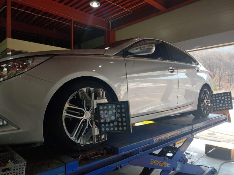마무리로는 편마모 현상과 핸들쏠림 현상을 잡아드리기 위해 휠 얼라이로 마무리해드렸습니다.