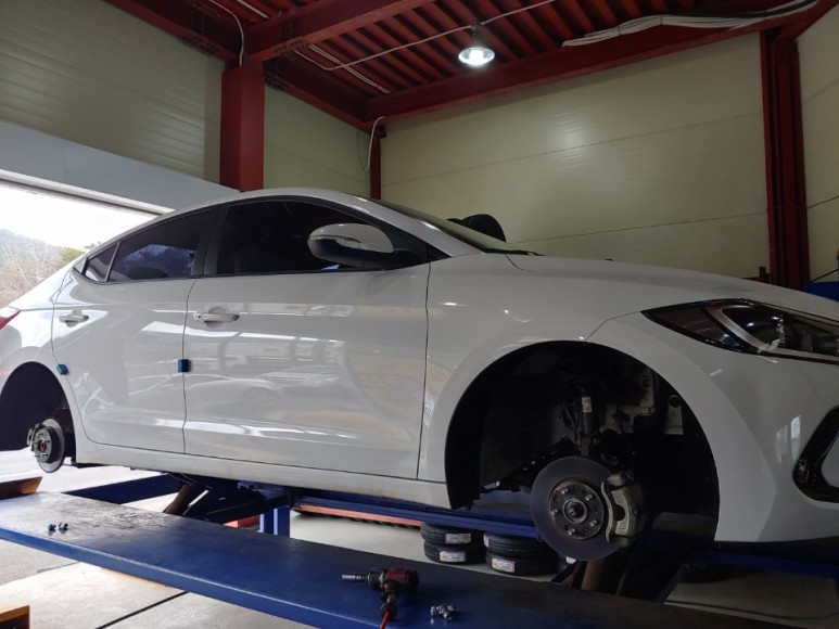 타이어 교체 작업을 하는 차량은 아반떼 ad 이며