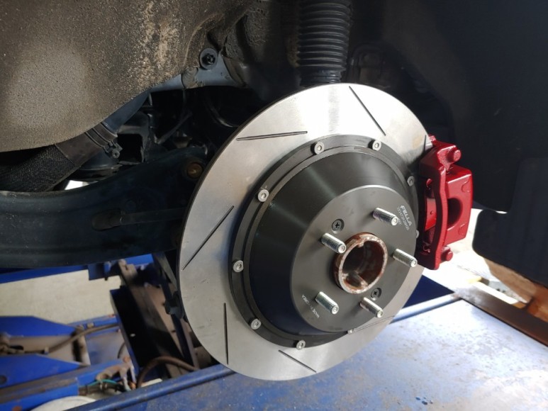 기본적으로 제품 구성은 전용 브라켓과 볼트 캘리퍼와 패드 그리고 디스크로 돼 있습니다