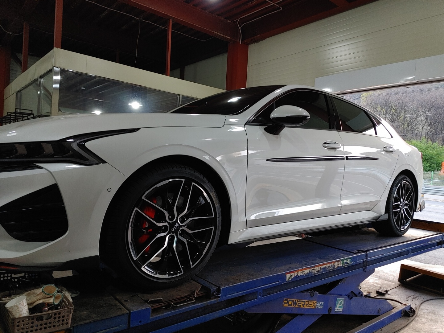 k5 19인치 순정휠에 350mm 디스크는 간섭없이 장착가능고여 ..